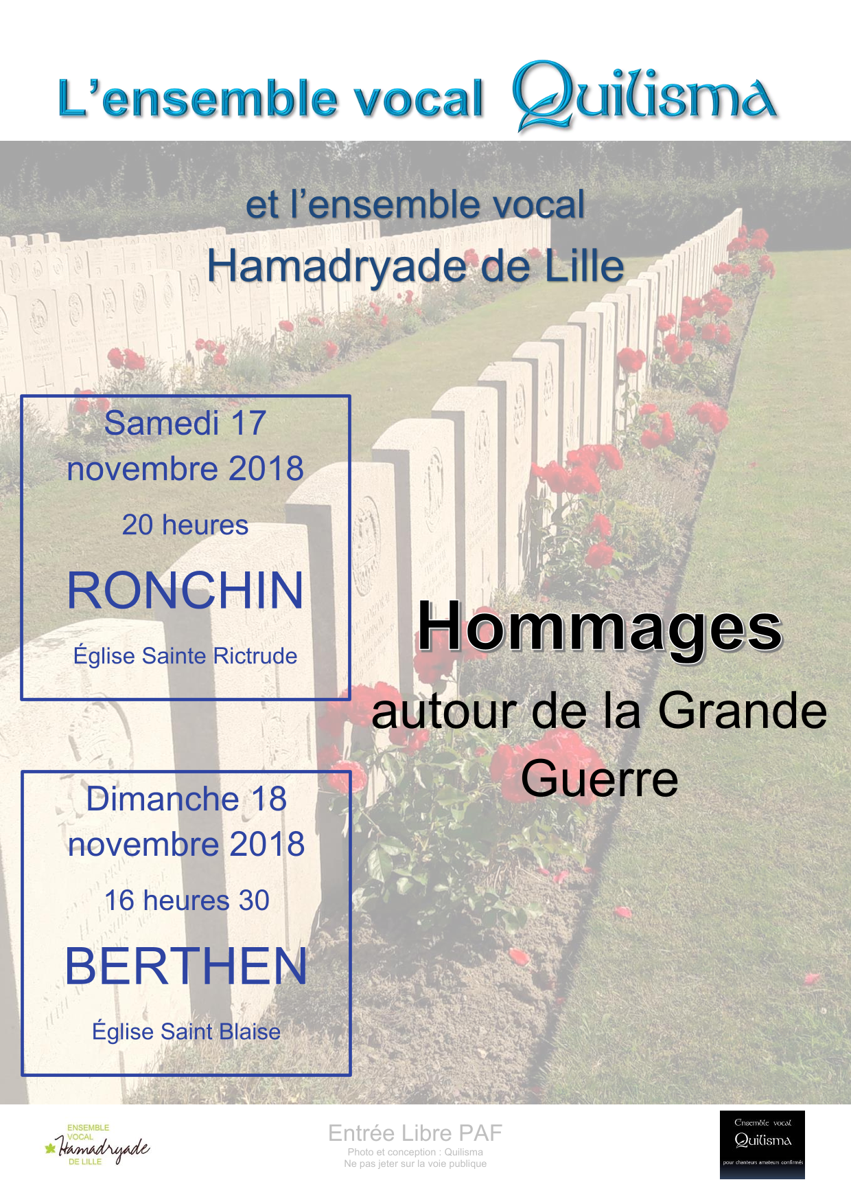 En commémoration du centenaire de l’armistice, Quilisma a chanté des œuvres retraçant les souffrances des soldats, le tout ponctué de récits authentiques de ceux qui furent dans les tranchées.